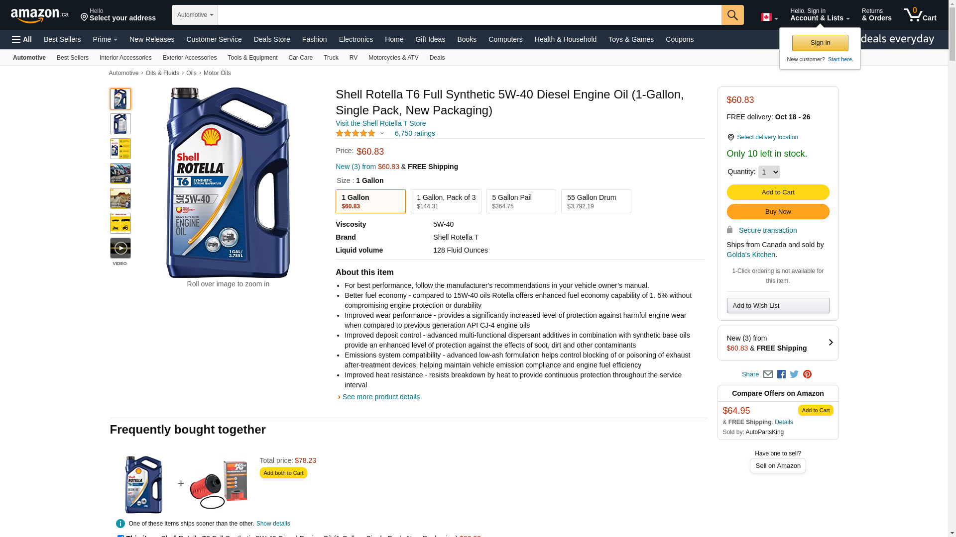 Shell Rotella T6 Full Synthetic 5W-40 Diesel Engine Oil (1-Gallon, Single Pack, New Packaging)