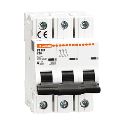 Lovato Electric P1MB3PB04 Miniature Circuit Breaker, 3P - 10Ka, 3 Modules, Characteristic B, 4A