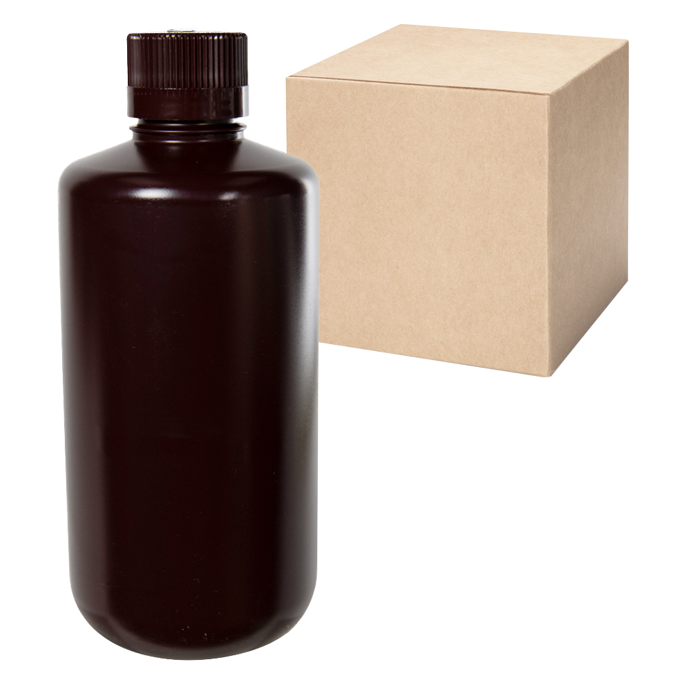 32 oz./1000mL Nalgene? HDPE Narrow Mouth Amber Bottles with 38/430 Caps - Case of 24