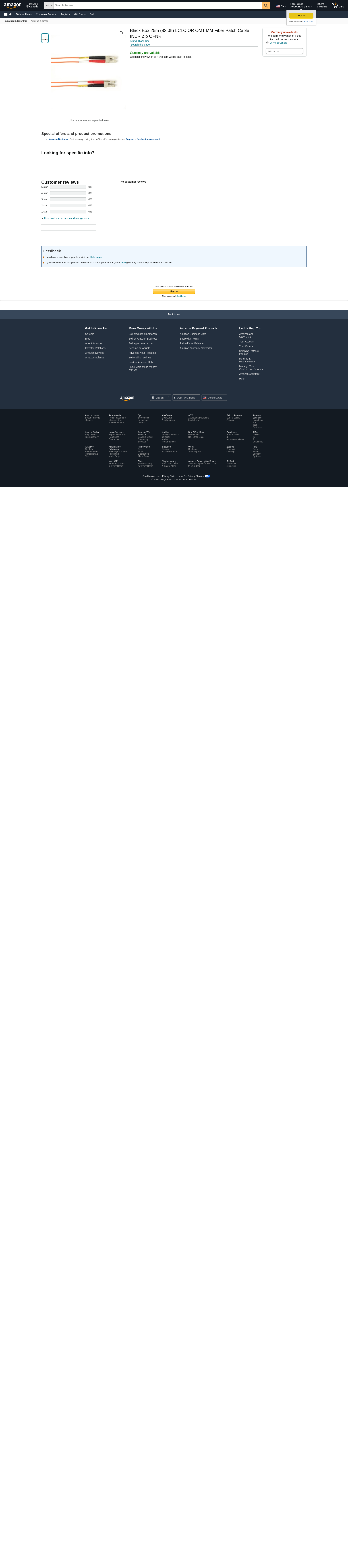 Black Box 25-M, Lc-Lc, 62.5-Micron, Multimode, PVC, Orange Fiber Optic Cable