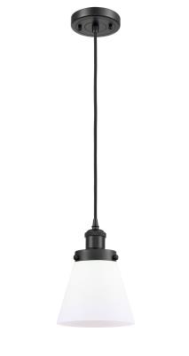 INNOVATIONS LIGHTING 916-1P-BK-G61-LED BALLSTON SMALL CONE 1 LIGHT 6 INCH MATTE WHITE GLASS MINI PENDANT, MATTE...
