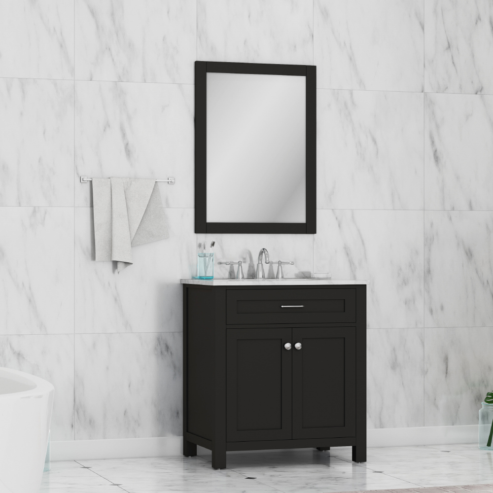 ALYA BATH HE-101-30-E-CWMT NORWALK 30 INCH VANITY WITH CARRERA MARBLE TOP, ESPRESSO