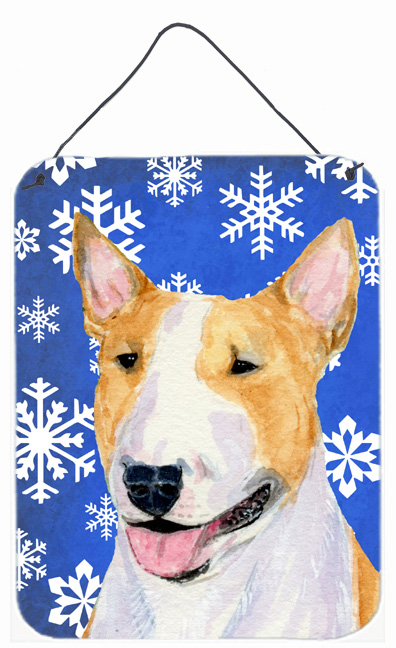Carolines Treasures SS4634DS1216 Bull Terrier Winter Snowflakes Holiday Aluminium Metal Wall Or Door Hanging Prints