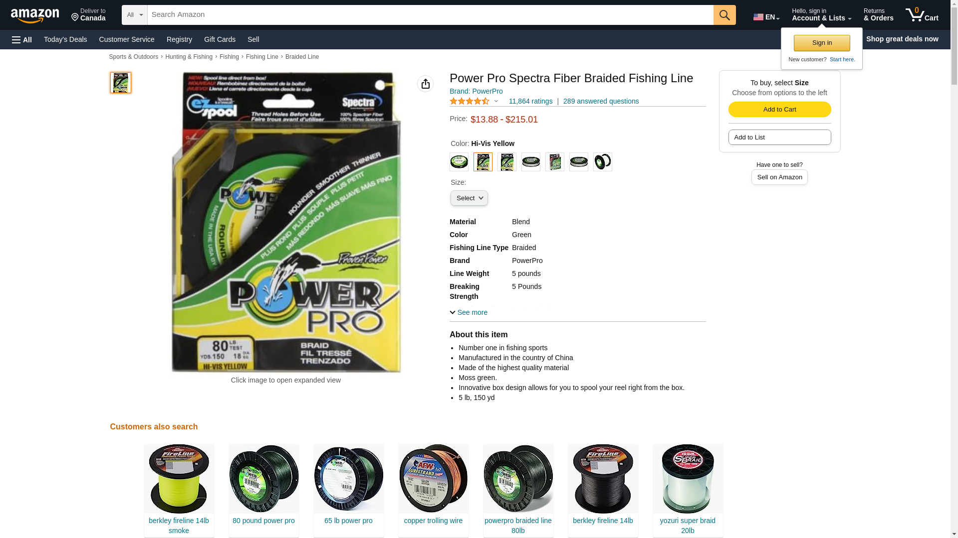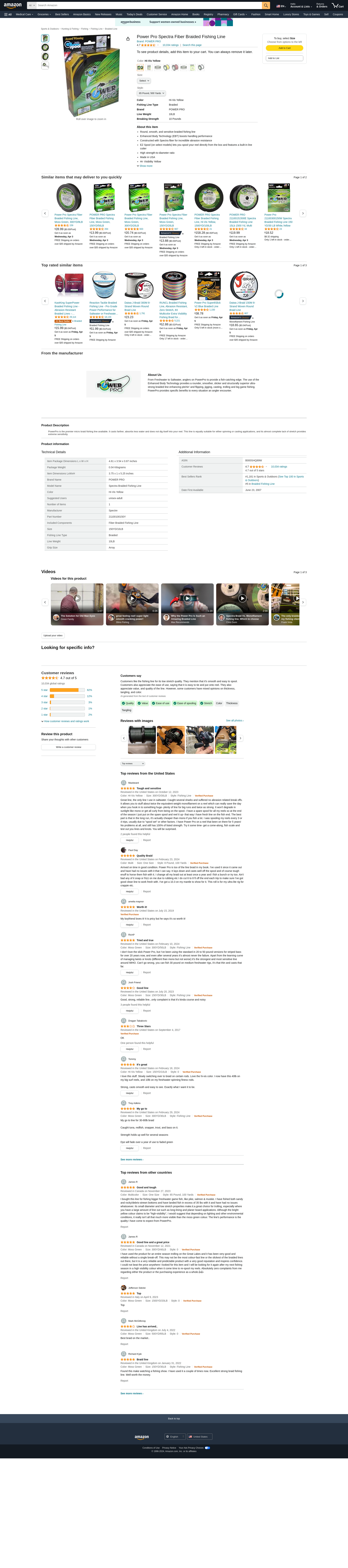 POWER PRO Spectra Fiber Braided Fishing Line, Hi-Vis Yellow, 500YD/65LB