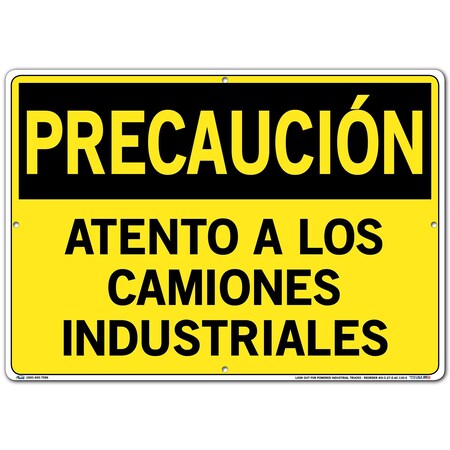 Vestil Caution Sign SI-C-27-E-AC-130-S Aluminum Composite .130" Overall Size 20.5"W x 14.5"H Look Out for Powered Industrial Trucks, ATENTO A Los CAMIONES INDUSTRIALES