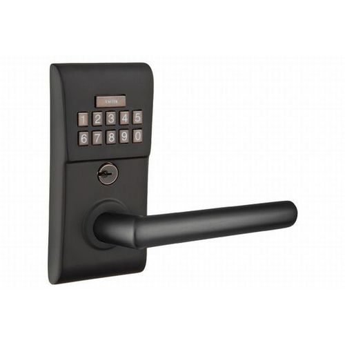 Emtek E2220STUUS19LH Stuttgart Left Hand Modern Leverset Storeroom Electronic Keypad Lock with Adjustable Latch Flat Black Finish