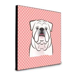 Carolines Treasures BB1220UP88 8 x 8 x 0.625 in. Checkerboard Pink White English Bulldog Artwork Panel Wall Decor
