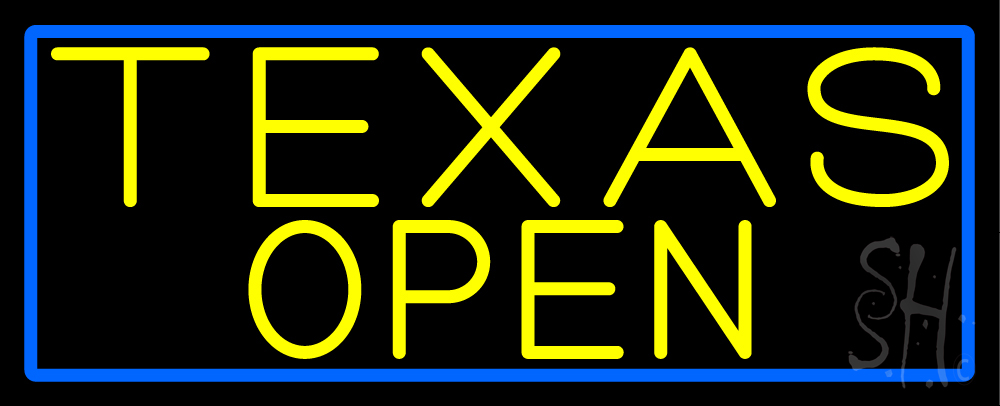 The Sign Store N105-17127 13 x 32 in. Yellow Texas Open with Blue Border Neon Sign - Blue & Yellow