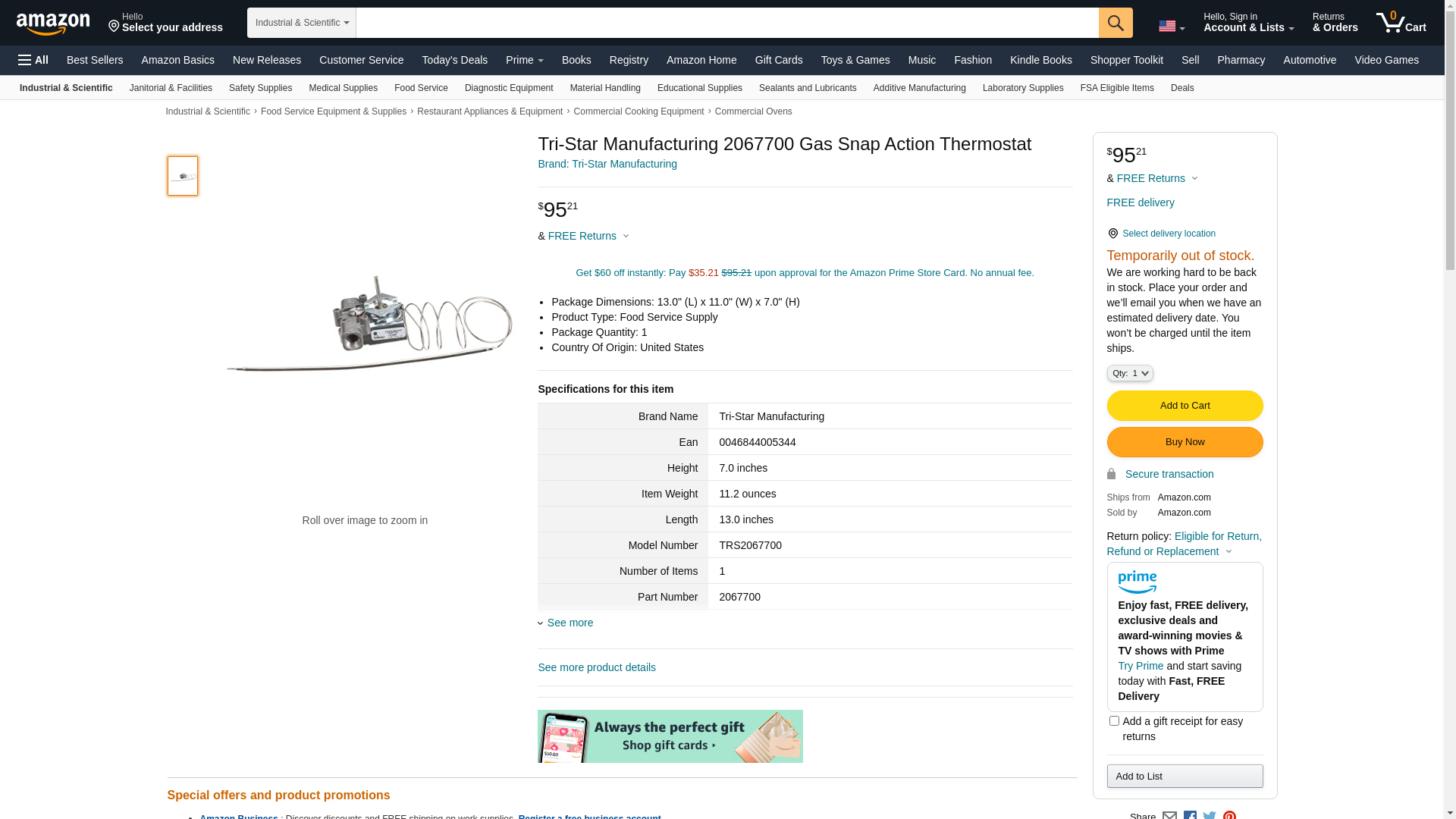 Tri-Star Manufacturing 2067700 Gas Snap Action Thermostat