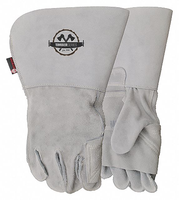 LEATHER GLOVES, UNLINED, GAUNTLET CUFF, WING THUMB, XXL/SZ 11, GREY, COWHIDE/POLYESTER, PAIR