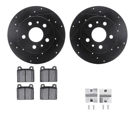 Dynamic Friction Company Front Brake Rotors-Drilled and Slotted-Black with 5000 Advanced Brake Pads includes Hardware 8512-74084