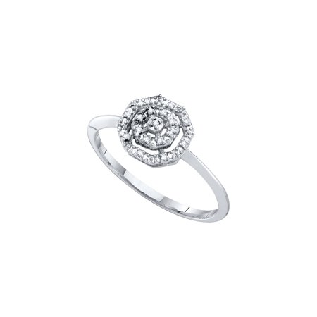 <p><span style="font-size:16px;"><b><u>Description</u></b><br /></span></p> <p><span style="font-size: 14px;">10kt White Gold Womens Round Diamond Octagon Cluster Ring .03 Cttw</span></p> <br /> <p><span style="font-size:16px"><u><b>Gemstone Details</b></u></span></p> <p><span style="font-size:14px">.03 Carats total weight<br /><br />All diamonds are natural and conflict-free in origin<br /><br /><b>Round Diamond</b><br /></span></p> <li>.03 ct.t.w.</li> <li>I2-I3 clarity</li> <li>J-K color</li> <li>Prong setting<br /><p><span style="font-size:16px"><u><b>Specifications</b></u><br /></span></p><p><span style="font-size:14px">10kt White Gold<br />1.13 grams (approximately)<br />Ring size selectable</span></p><p><span style="font-size:11px">Combined diamond weight of .03 carats total weight represents a range of cts. t.w.</span></p></li>