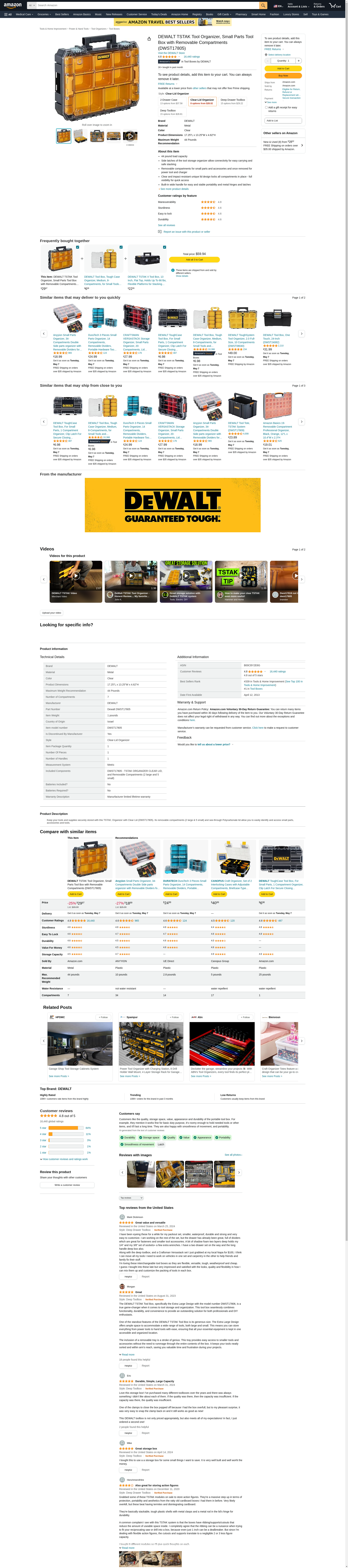 DEWALT TSTAK Tool Organizer, Holds Up To 44 lbs., Clear Lid Organizer, Compartments for Small Tools and Accessories (DWST17805)