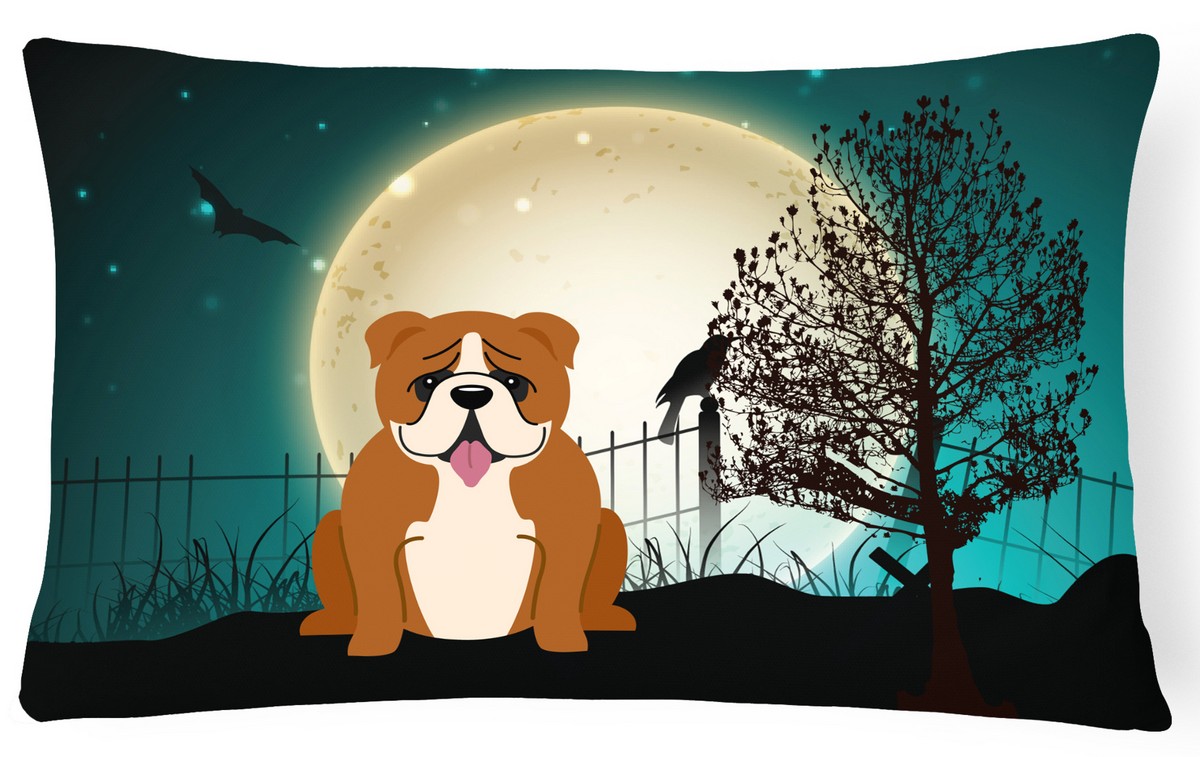 Carolines Treasures BB2310PW1216 Halloween Scary English Bulldog Red & White Canvas Fabric Decorative Pillow