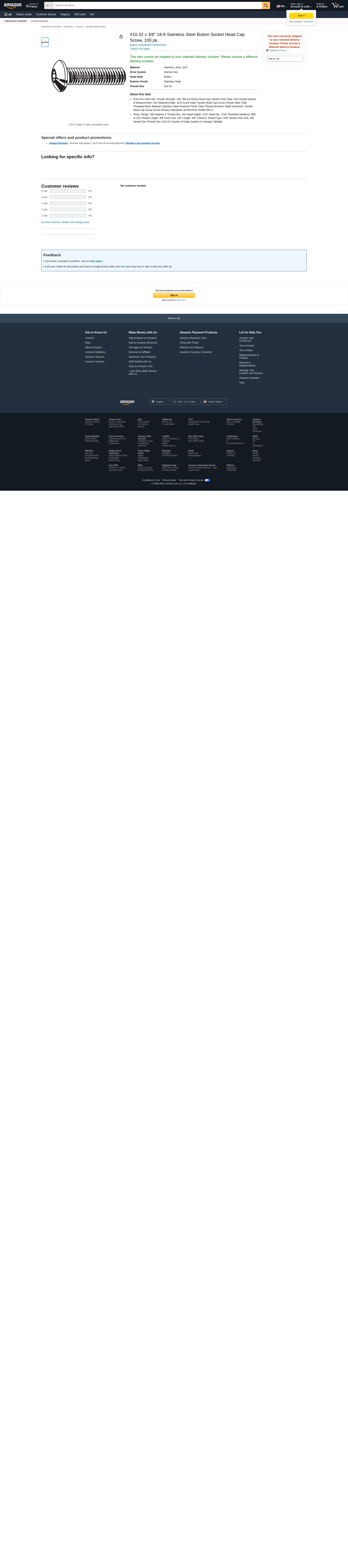 'Socket Head Cap Screw, System of Measurement Inch, Button, Basic Material Stainless Steel, Material Grade 18-8, #10-32, Length 3/8 In., Fastener Finish Plain, Fastener Thread Type UNF, Drive Type Hex Socket, Drive Size 1/8 In., Thread Style Fully Threaded, Thread Direction Right Hand, Thread Length 3/8 In., Head Height 1/16 In., Thread Dia. #10, Package Quantity 100'