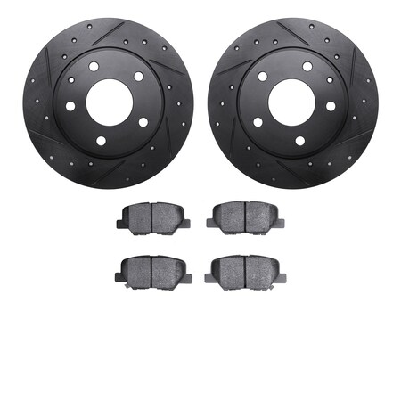Dynamic Friction Company Rear Brake Rotors Drilled and Slotted Black with 5000 Advanced Brake Pads - 8502-80036