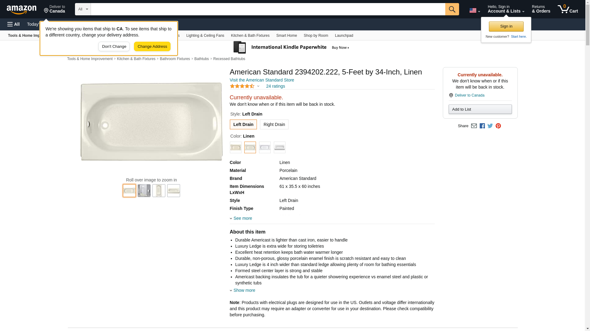 American Standard 2394202.222, 5-Feet by 34-Inch, Linen