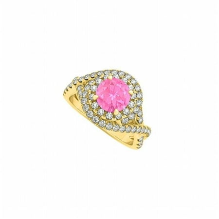Fine Jewelry Vault UBUNR50827AGVYCZPS Pink Sapphire & CZ Twisted Shank Engagement Ring, 64 Stones