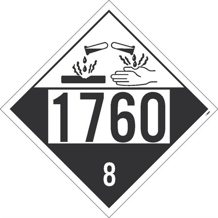 Placard, Corrosive Liquid, 1760 8, 10.75X10.75, Tag Board, Card Stock, Pack 100