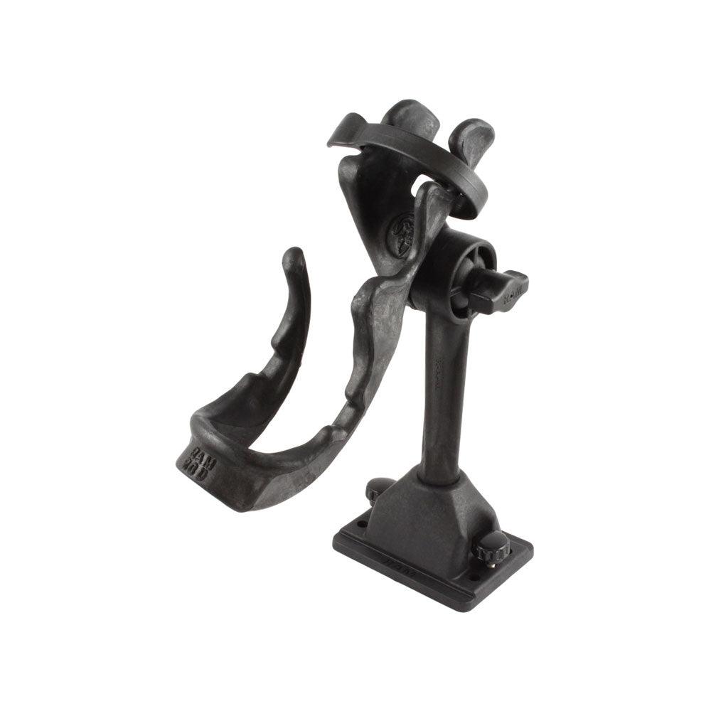 The RAM-114-DU, high strength composite fishing rod holder with deck track base, is a must have for the fishing enthusiast. Designed to mount onto a horizontal RAM track in your boat, you can rotate the rod holder 360 degrees, while tilting the cradle forward and back for the optimum angle.