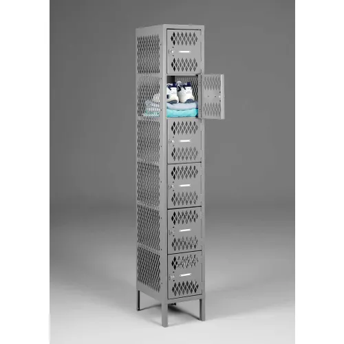 Tennsco® 6-Tier 6 Door Ventilated Locker, 12"W x 18"D x 72"H, Medium Gray, All-Welded