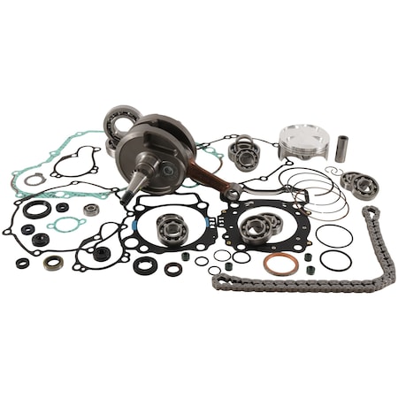 Convenient one-stop shop in a box; nearly all components required for a complete and professional rebuild.<br> Vertex piston kit (standard compression piston, rings, pin and clips).<br> Hot Rods heavy duty crank (stock strokeincludes wrist pin bearing for two strokes).<br> Hot Rods main bearing/ seal kit.<br> Hot Rods transmission bearing kit (includes transmission bearings, output shaft collar and sprocket lock washer).<br> Hot Rods counter balancer bearing kit.<br> Hot Rods water pump bearing and seal kit.<br> Vertex complete gaskets kit, including seals and O-ring kit (covers top and bottom).
