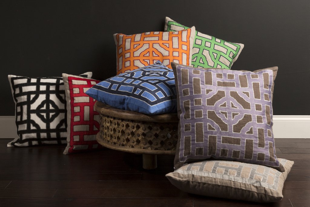 Surya LD049-1818P 18 x 18 in. Chinese Gate Woven Pillow Kit - Cherry, Burgundy & Ivory