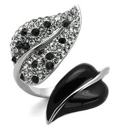 Alamode TK1678-10 Women High Polished Stainless Steel Ring with Top Grade Crystal in Jet - Size 10