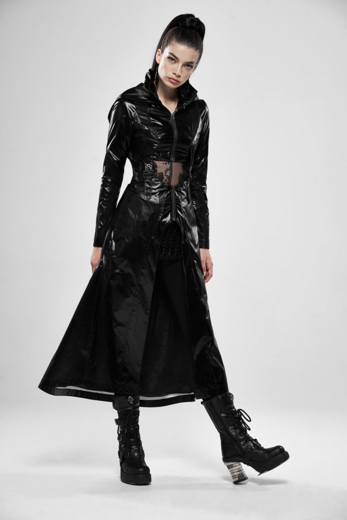 Western Fashion WY1142-BK-M Cosmic Warrior Glossy Hollow Detachable Hem Medium-Length Coat, Black - Medium