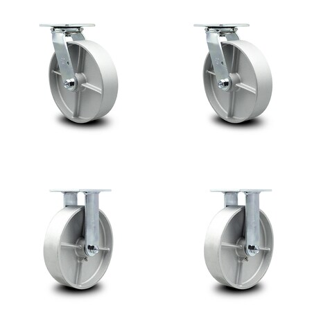 Semi Steel Cast Iron Swivel Top Plate Caster Set of 4 w/8" x 2" Silver Wheels - Includes 2 Swivel & 2 Rigid - 5000 lbs Total Capacity - Service Caster Brand