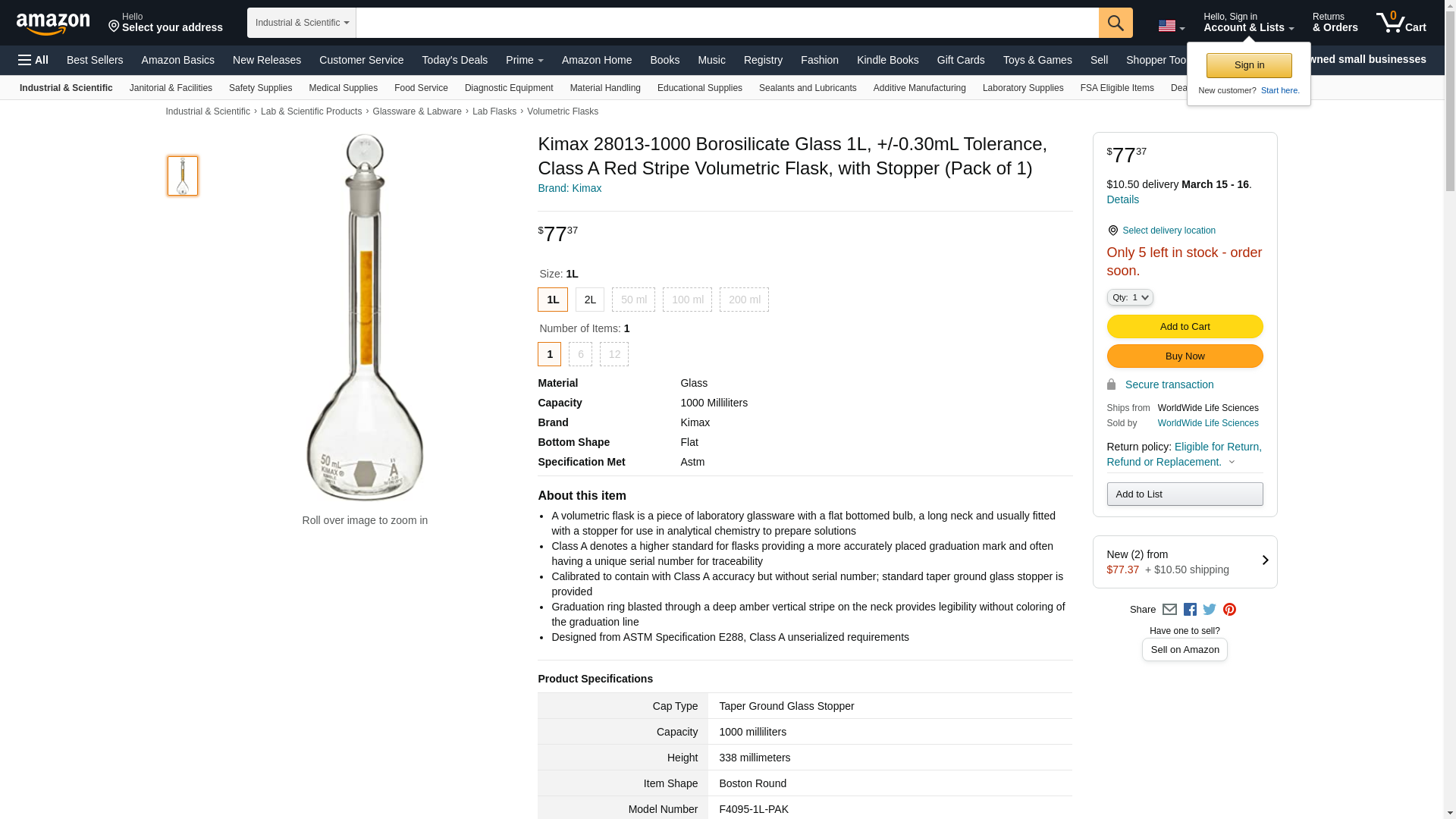 - Calibrated to contain with Class A accuracy but without serial number; standard taper ground glass stopper is provided