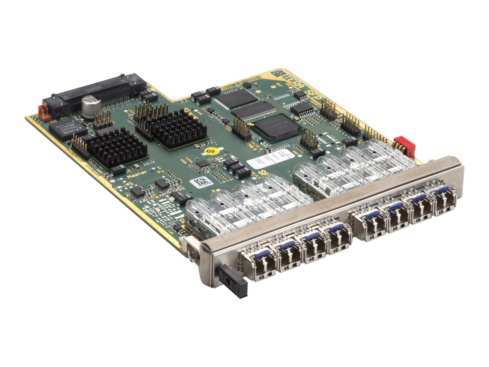 - Includes eight SFP transceiver ports with duplex LC connectors.