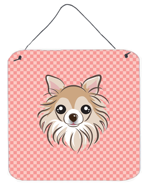 Carolines Treasures BB1251DS66 Checkerboard Pink Chihuahua Aluminum Metal Wall Or Door Hanging Prints, 6 x 6 In.