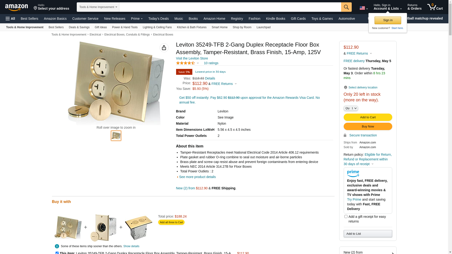 ![]() gordonelectricsupply.com | 35249-TFB | 1 | Leviton Orders Over $750 Usually Ship the Next Day, Otherwise3-5 Days | 1 | 1 @ $127.30 |