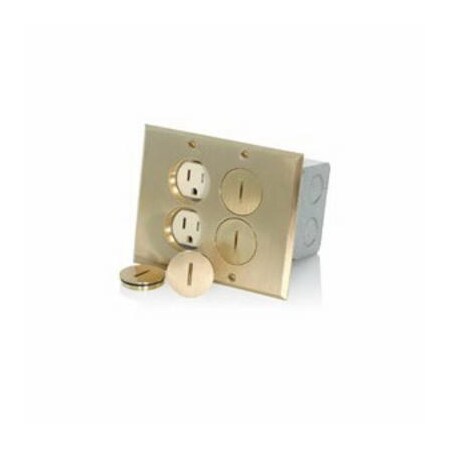 Leviton 35249-TFB 2-Gang Duplex Receptacle Floor Box Assembly, Tamper-Resistant, Brass Finish, 15-Amp, 125V