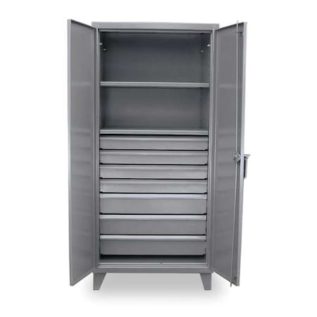 Strong Hold Products 36-242-7DB Dark Gray Floor Model Cabinet with Drawers, 12 gauge, 1900 lb. Capacity per Shelf, 400 lb. Capacity per Drawer, 36" Width x 24" Diameter x 72" Height