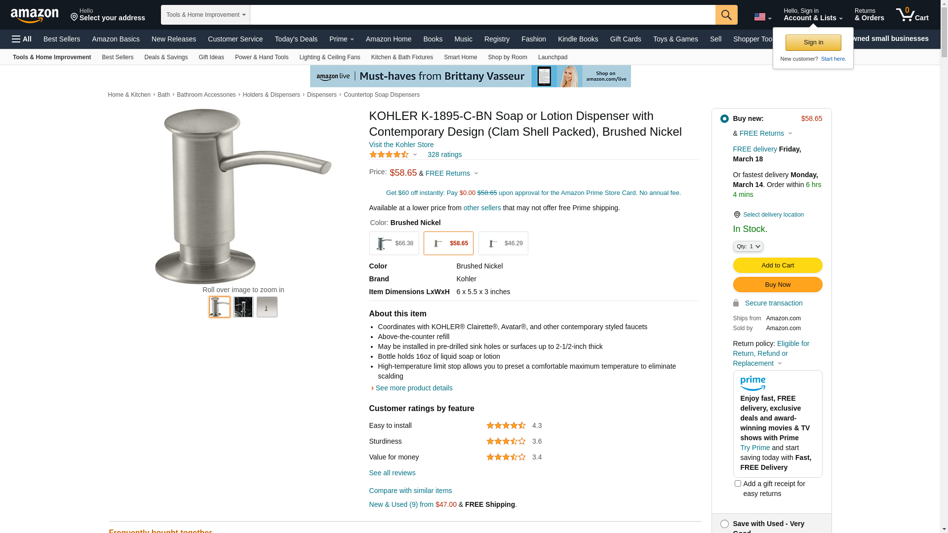 KOHLER K-1895-C-BN Soap or Lotion Dispenser with Contemporary Design (Clam Shell Packed), Brushed Nickel
