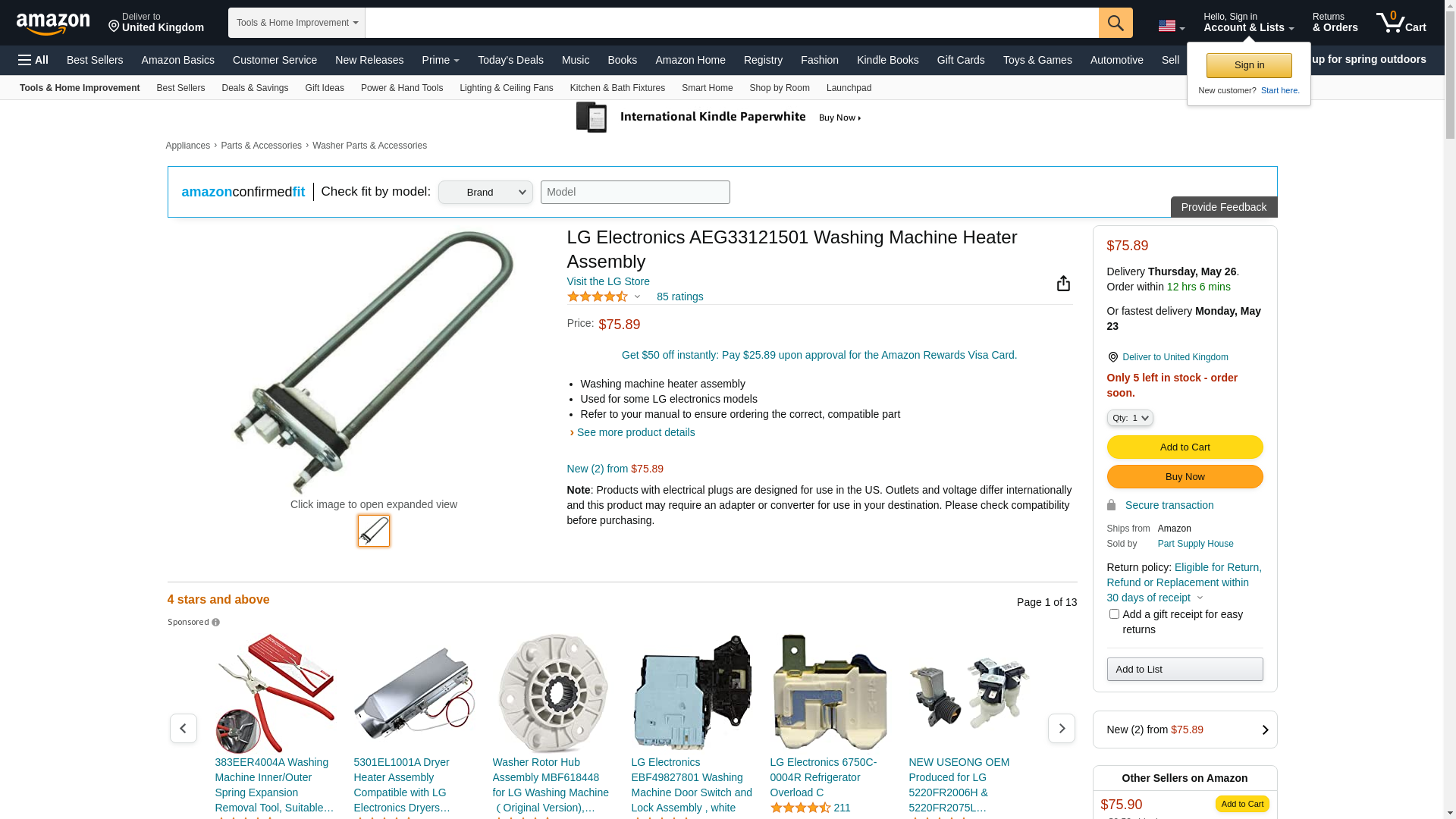 LG AEG33121501 Genuine OEM Heating Element with Thermistor for LG Washing Machines