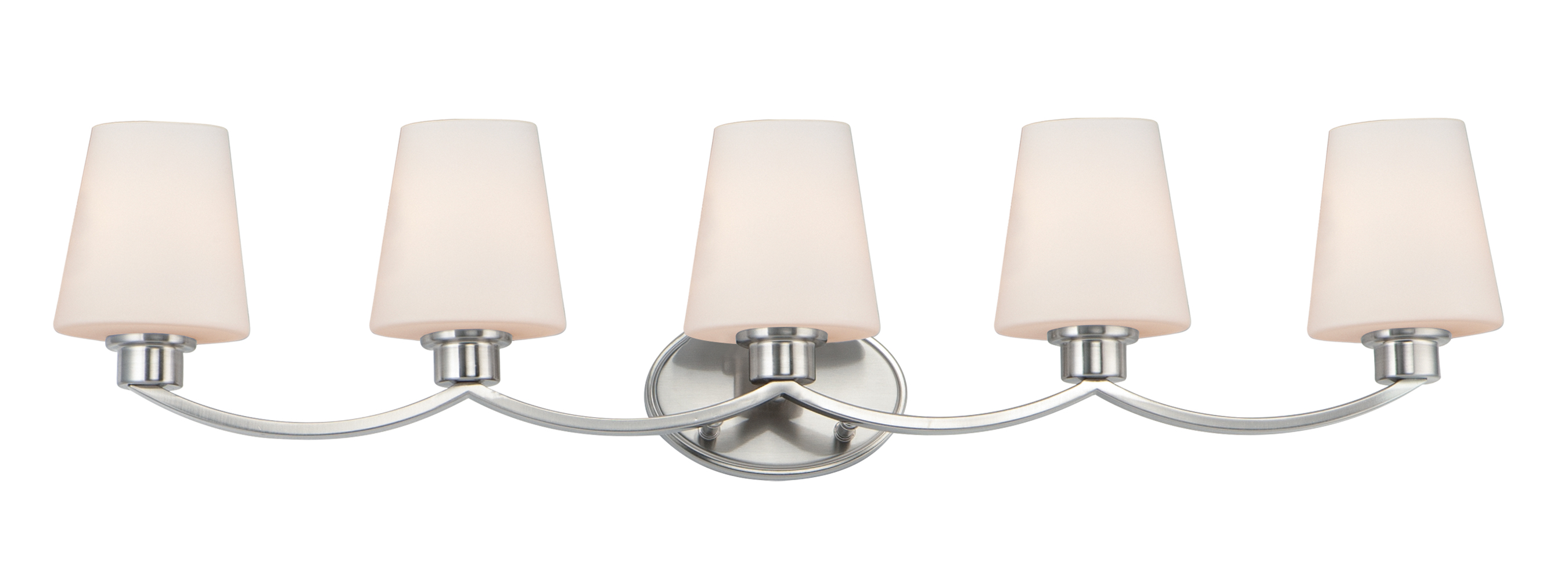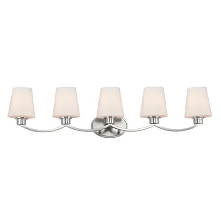 Maxim 11835SWSN Shelter Rectangular Tapered Satin White Glass Bath Vanity Wall Mount, 5-Light 300 Total Watts, 10" H x 38" W, Satin Nickel