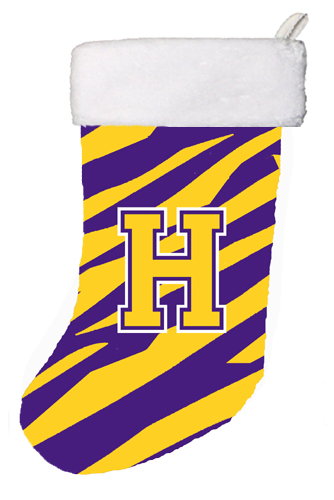 Carolines Treasures CJ1022-H-CS 11 x 18 in. Tiger Stripe - Purple Gold Initial H Monogram Initial Christmas Stocking
