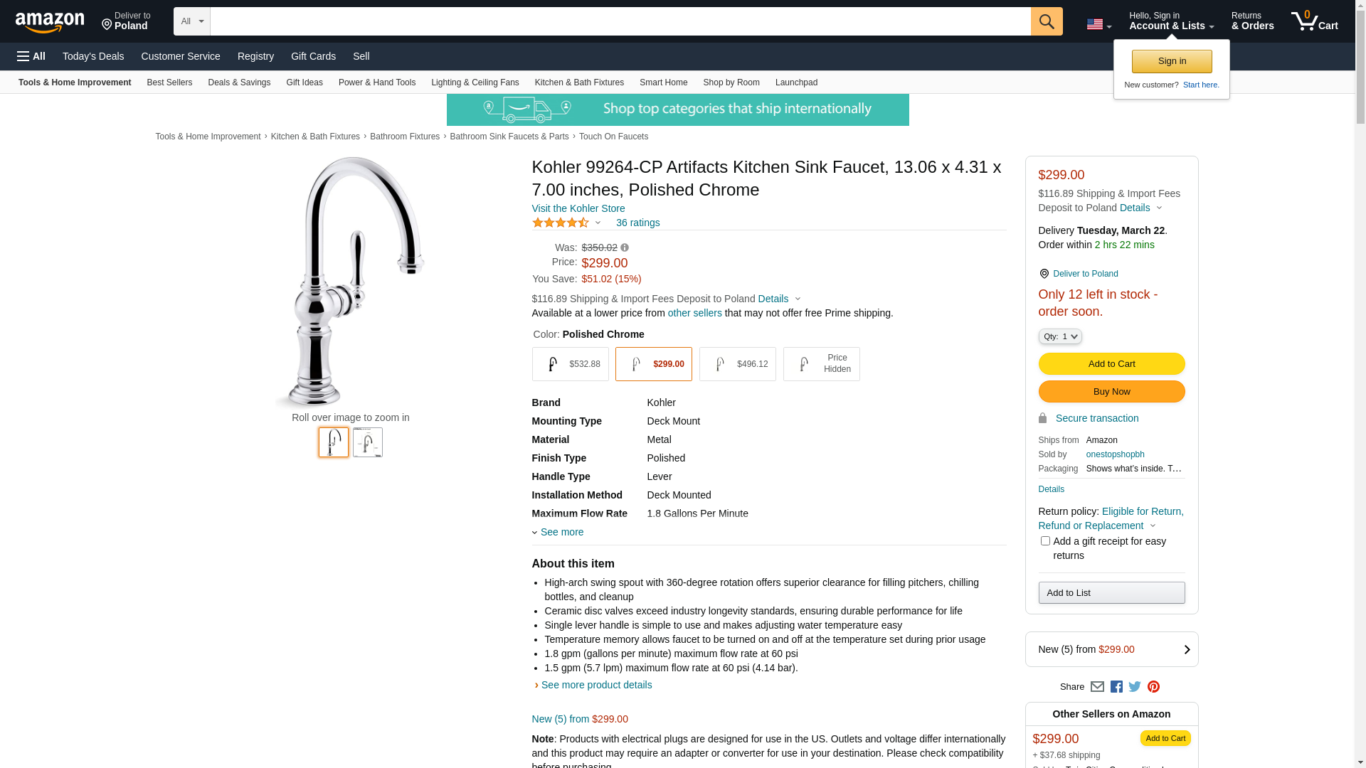 ![]() Faucet Depot | K-99264-CP | 1 | -2 | 1 | 1 @ $402.54 |