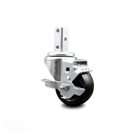 3 Inch Hard Rubber Wheel Swivel 3/4 Inch Square Stem Caster with Brake SCC
