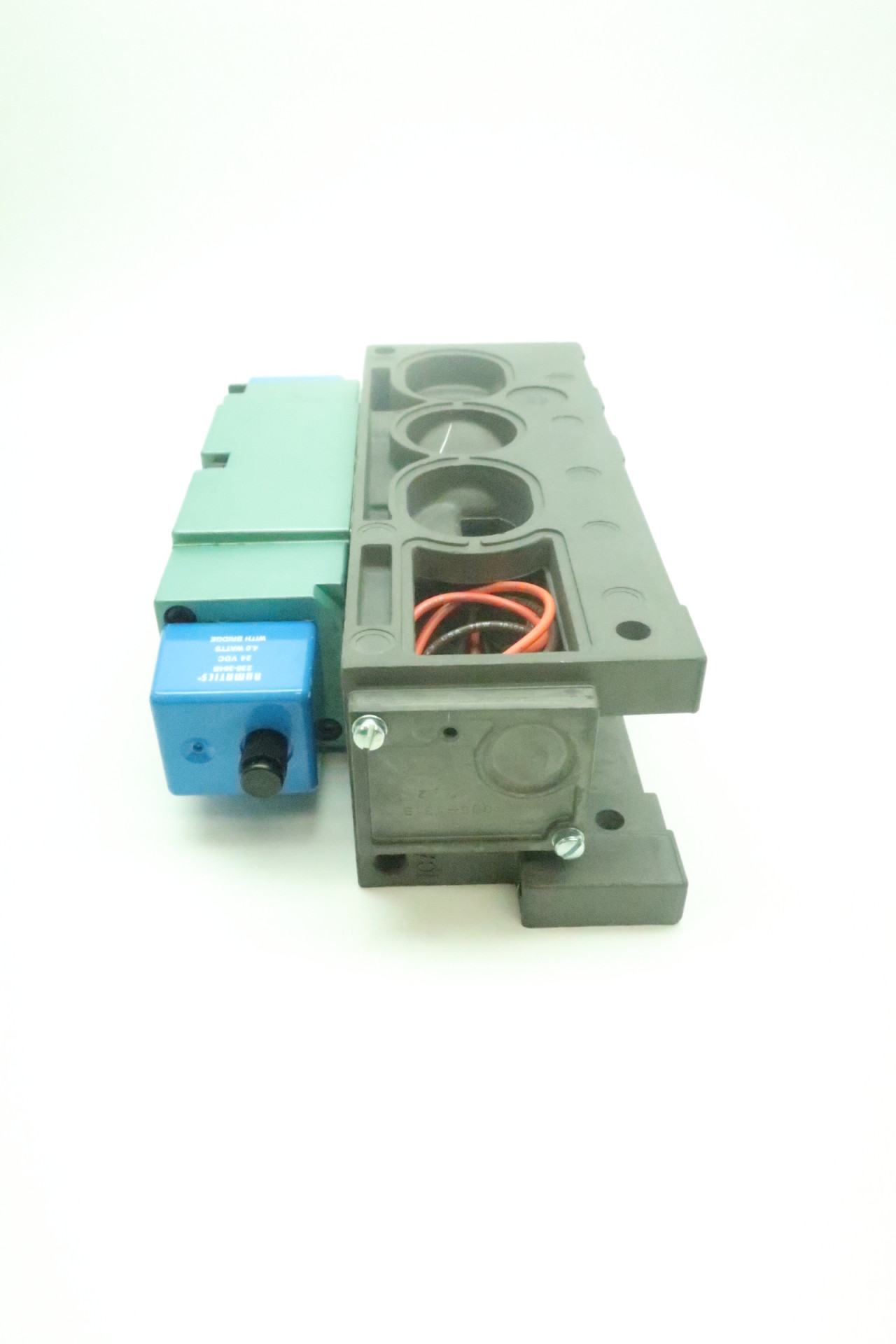 Numatics 555BB515MT00061 Mark 55 Double Sol Valve 3 Pos/4 Way w/Man Block 24 VDC 3/4 NPTF w/Plug-in/Light/Flush Non-Lkg OR/Open Ctr