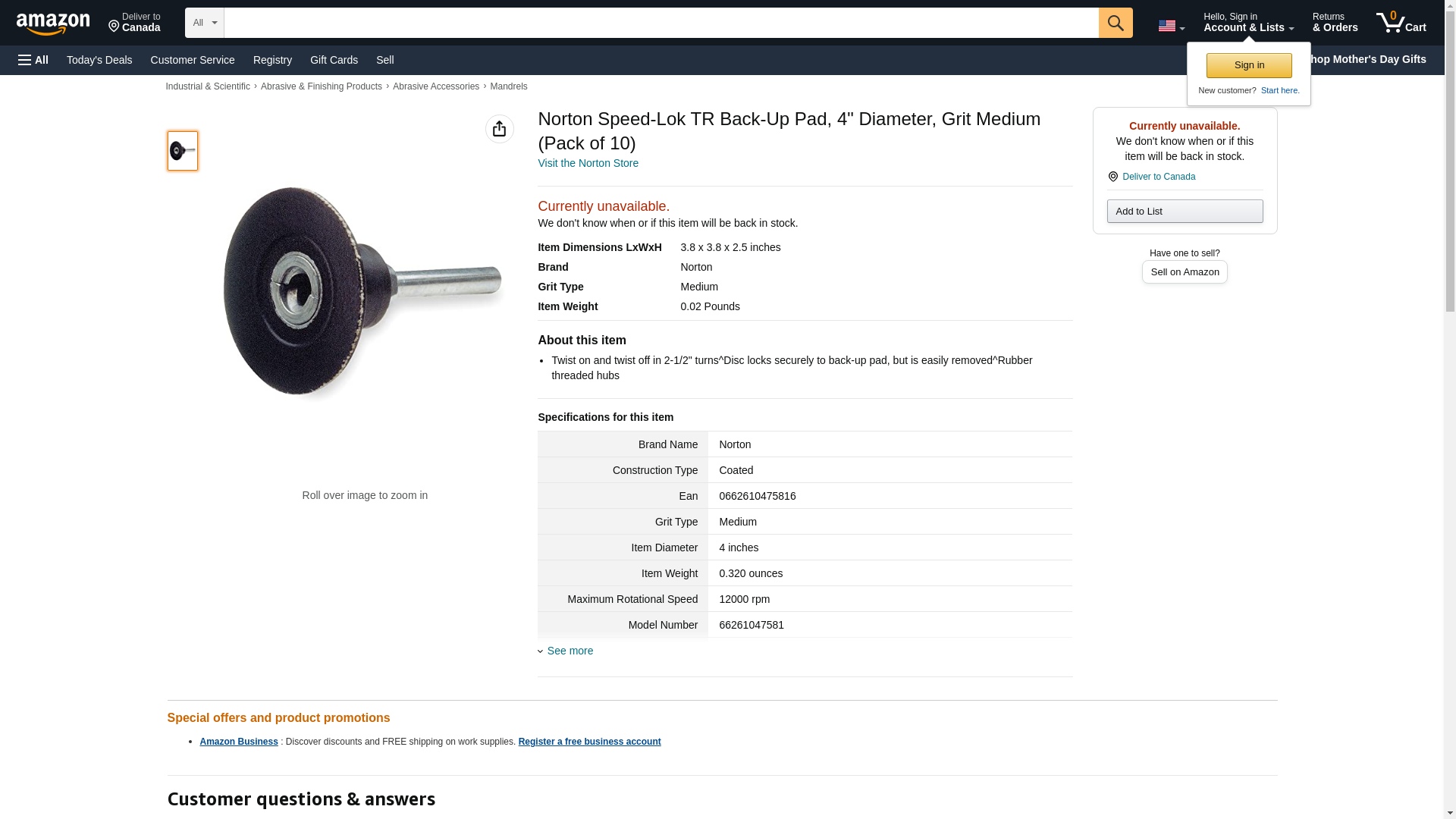Norton Speed-Lok TR Back-Up Pad, 4" Diameter, Grit Medium (Pack of 10)