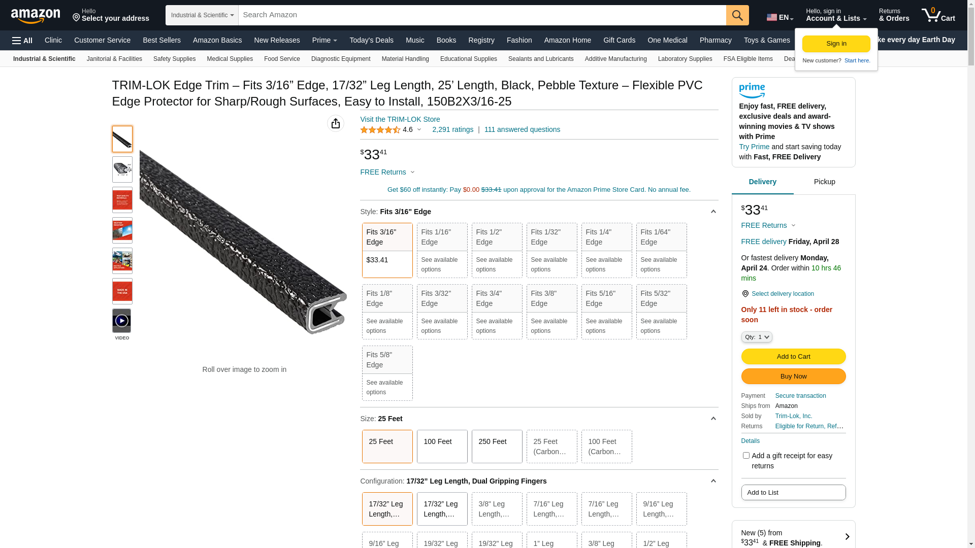 EDGE TRIM,ALUM CLIP,0.36 IN W,25 FT