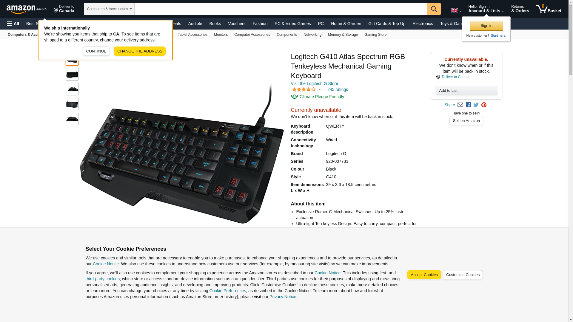 Logitech 920-007731 G410 ATLAS SPECTRUM RGB COMPACT MECHANICAL GAMING KEYBOARD