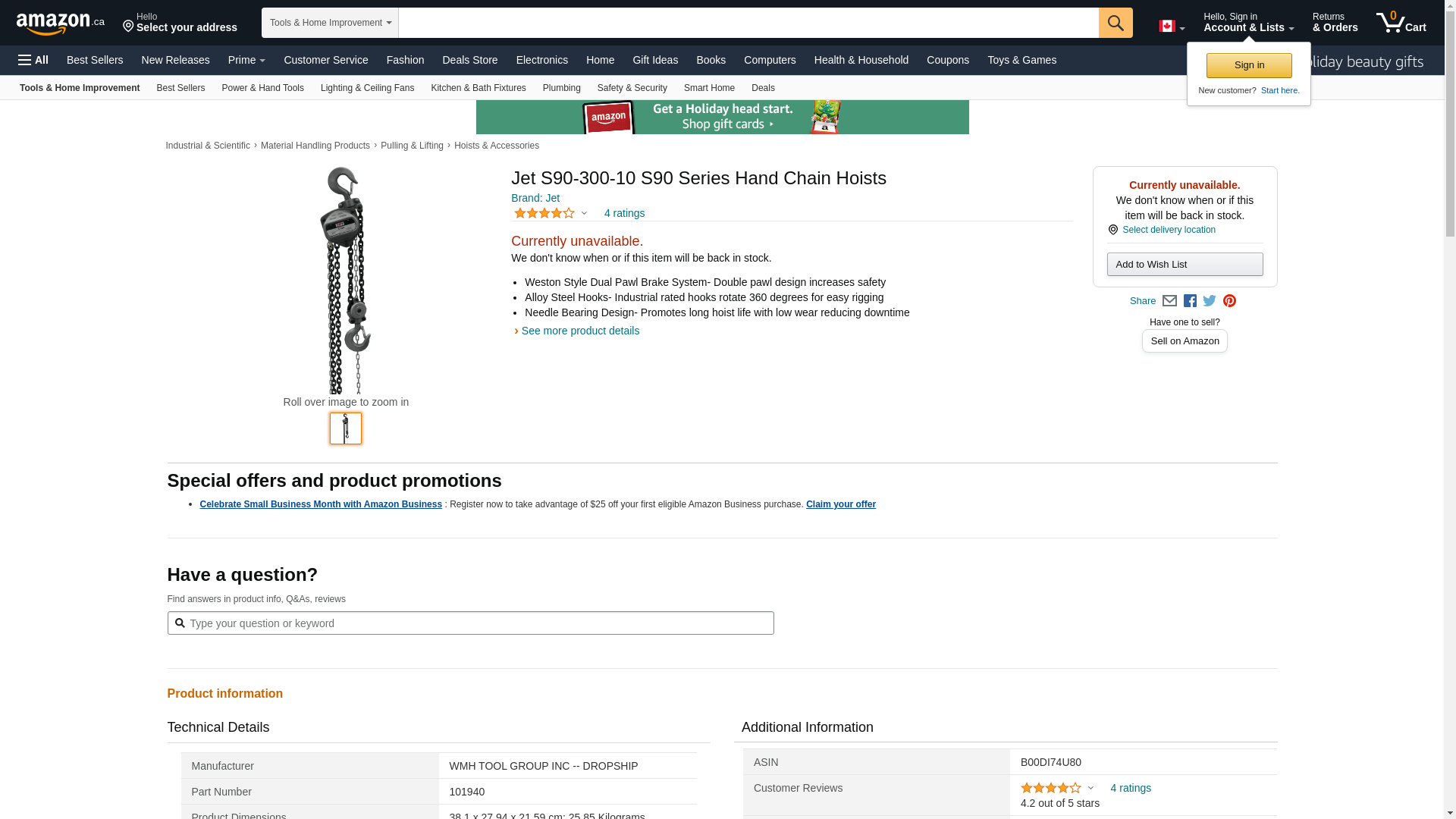 JET S90-300-10 3 Ton Hand Chain Hoist with 10 ft. Lift | CPO Outlets