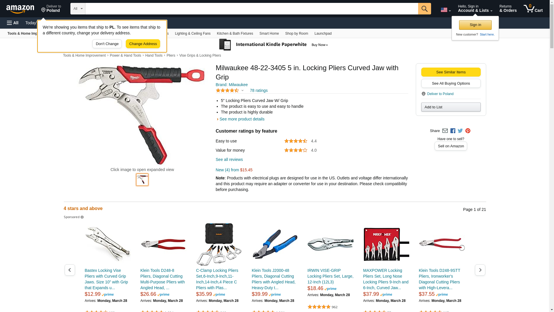 Milwaukee 48-22-3405 5 in. Locking Pliers Curved Jaw with Grip