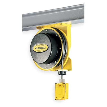 Durable, high-performance reels ensure safe and effective wire management. Extra-sturdy, with positive latch mechanism and corrosion-resistant, powder-coated finish. Can be mounted on the ceiling, wall, or bench.<br /><br /> Item: Retractable Cord Reel<br /> Grade - Ext. Cords and Outlet Strips: Heavy Industrial<br /> Voltage - Ext. Cords and Outlet Strips: 125VAC<br /> Cord Ending: Dual Box Receptacle<br /> Cord Length - Ext. Cords and Outlet Strips: 45 ft.<br /> Reel Color: Yellow<br /> Max. Amps - Ext. Cords and Outlet Strips: 15.0<br /> Gauge/Conductor - Ext. Cords and Outlet Strips: 12/3<br /> Cord Included: Yes<br /> Cord Color: Black<br /> Cord Ending NEMA Configuration: 5-15R<br /> Feeder Cord Ending NEMA Configuration: 5-15P<br /> NEC Cord Designation - Ext. Cords and Outlet Strips: SJEO<br /> Item - Ext. Cords and Outlet Strips: Retractable Cord Reel<br /> Number of Outlets: 2<br /> Feeder Cord Length: 5 ft.<br /> Feeder Cord Ending: Grounding Plug<br /> Indoor / Outdoor: Indoor<br /> Reel Mounting: Bench, Ceiling, Wall<br /> Reel Material: Steel<br /> Temp. Range: 40 Degrees to 110 Degrees F<br /> Overall Height: 13"<br /> Overall Width: 12-3/8"<br /> Overall Depth: 9-3/4"<br /> Watts: 1875<br /> Enclosed Reel: No<br /> Standards: UL 355/CSA C22.2 No.21<br />
