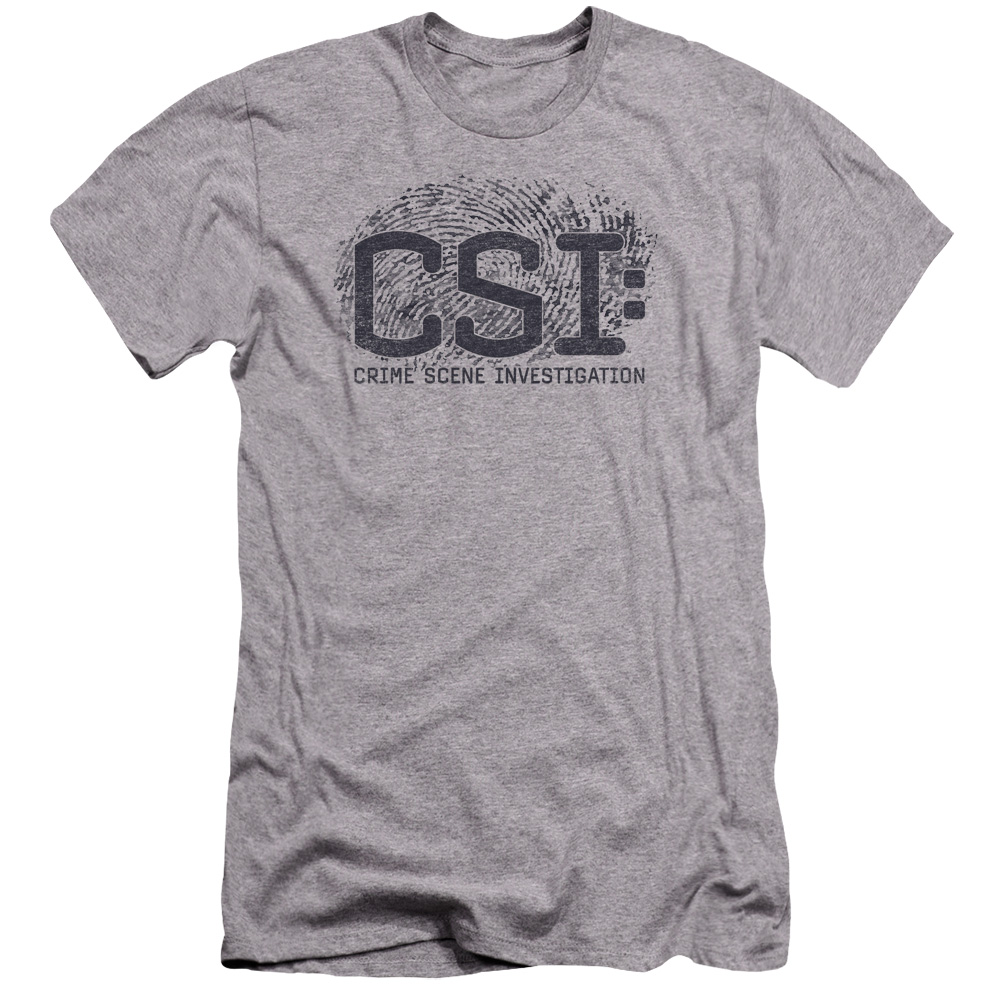 Trevco CBS1215-PSF-5 CSI & Distressed Logo Premium Canvas Adult Cotton Slim Fit 30-1 T-Shirt, Athletic Heather - 2X